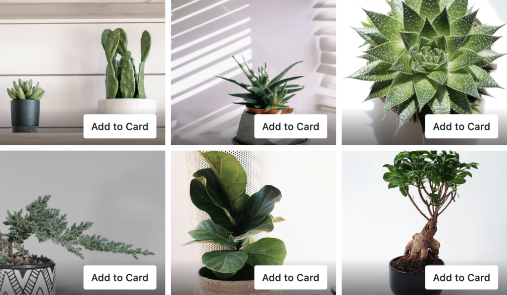 Each image represents a product, and the button lets users add items to the cart directly.