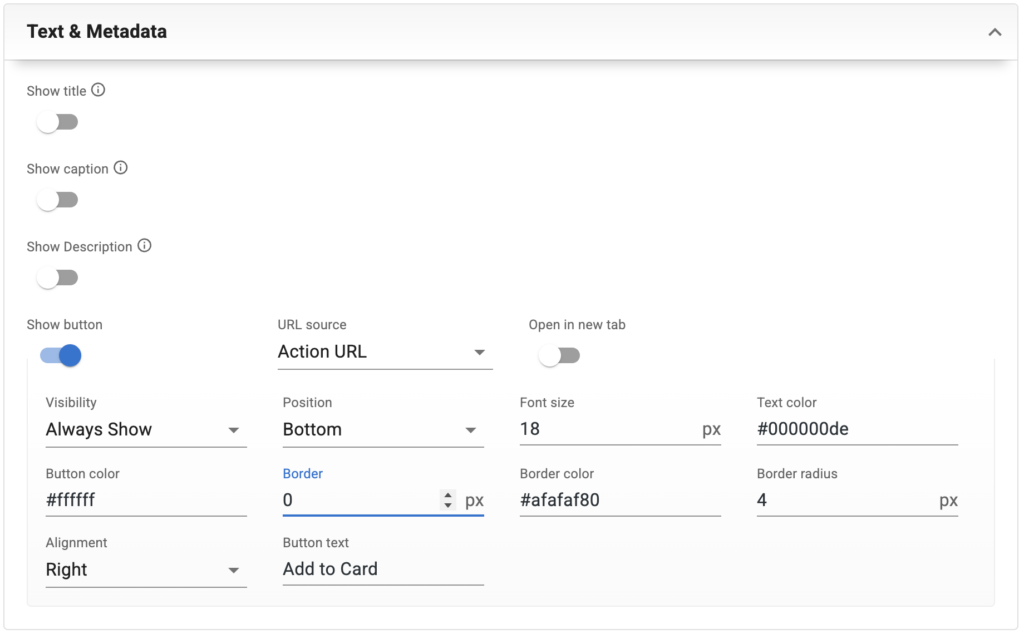 When enabled, the button will add the product associated with the gallery item directly to the user’s cart.