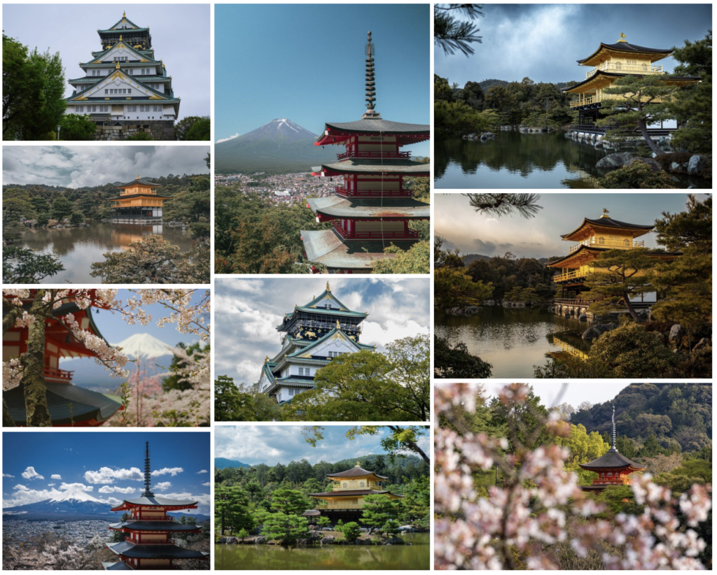 • Kyoto temples section: Justified layout for a clean, symmetric presentation of architecture photography.