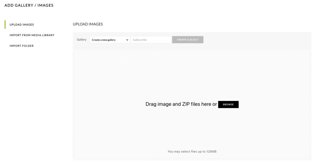 In Imagely, the workflow takes place across several different sections within the NextGEN Gallery system. Creating a gallery usually requires at least three distinct steps: uploading images in one area, organizing or managing those images in another, and then configuring the gallery settings in a separate panel. Each part of the process sits in its own dedicated section, so you move through multiple interfaces before the gallery is ready to be inserted into a page. The structure is built to support photographers who need deep control over large image libraries, proofing options, and sales tools, but it means the creation process feels more segmented. Users often spend more time navigating menus and settings to complete a single gallery, especially when handling more advanced features.