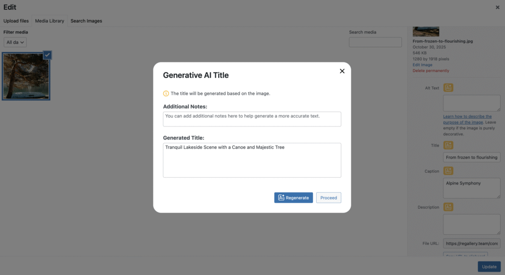 ✅ AI-powered metadata: Automatically generates alt text, captions, and titles — helpful for SEO and saves time.